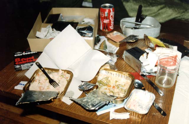 Other days, a typical TV dinner might be like this - army rashions and coke !