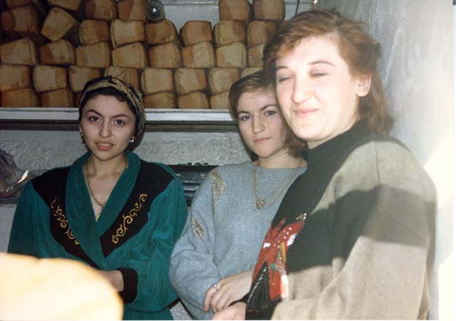 Now there's a sight for sore eyes (fantastic through the bottom of a vodka glass). These young ladies in a tiny shack, not much bigger than you can see in the picture, were selling bread and posed for this picture with their gold teeth carefully concealed.