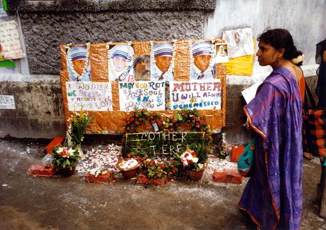 A little corner set up near the Mother House where people left loving tributes to their heroine.